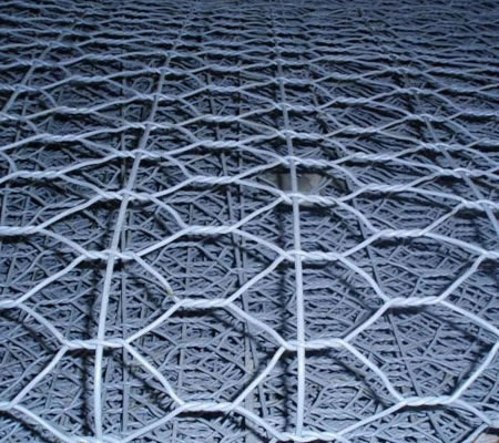 (4)鋅-5%鋁-混合稀土合金鋼絲包塑:在鋅-5%鋁-混合稀土合金鋼絲的表面包*層PVC保護層,再編織成各種規格的六角網。這層PVC保護層將會大大增加在高污染環境中的保護,并且通過不同顏色的選擇,使其能和周圍環境融合。