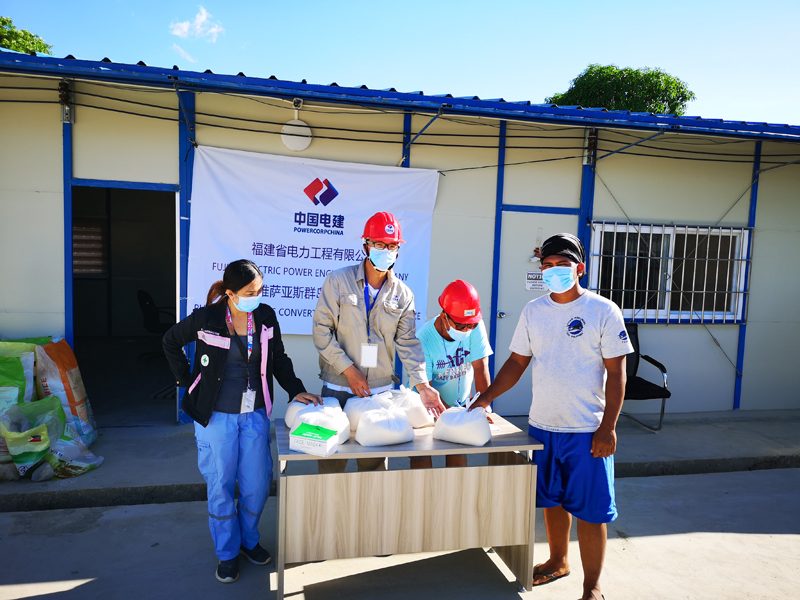 中國電建菲律賓MVIP項目部發(fā)放大米及口罩援助當?shù)乩щy工人