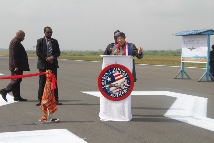 上午十點(diǎn)半,竣工典禮準(zhǔn)時(shí)開始,瑟利夫總統(tǒng)在典禮上發(fā)表了重要講話。瑟利夫總統(tǒng)對中國電建的施工質(zhì)量予以高度贊賞,并對中國電建為改善當(dāng)?shù)鼗A(chǔ)設(shè)施條件所付出的辛勤勞動表示感謝。他指出,利比里亞羅伯茨國際機(jī)場跑道升級項(xiàng)目的竣工為實(shí)現(xiàn)利比里亞的“現(xiàn)代化革命”目標(biāo)邁出了重要一步。